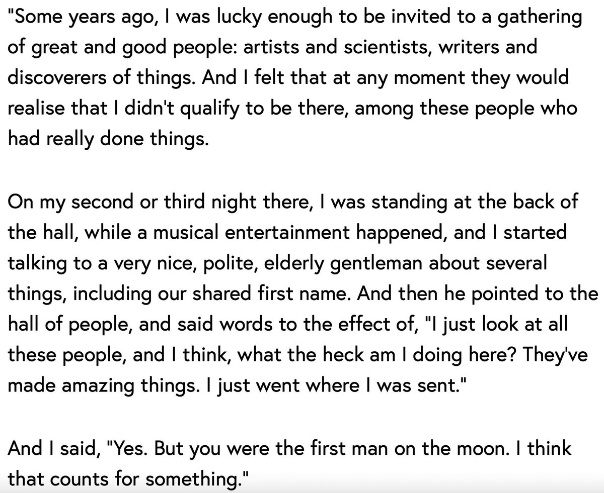 Almost as much in fact as the video of Buzz Aldrin dealing with a Moon conspiracy theorist like a gangster. Gaiman wrote on his blog May 12 about meeting a legendary man who said he felt out of place among great artists and scientists. They need to keep cool and.
